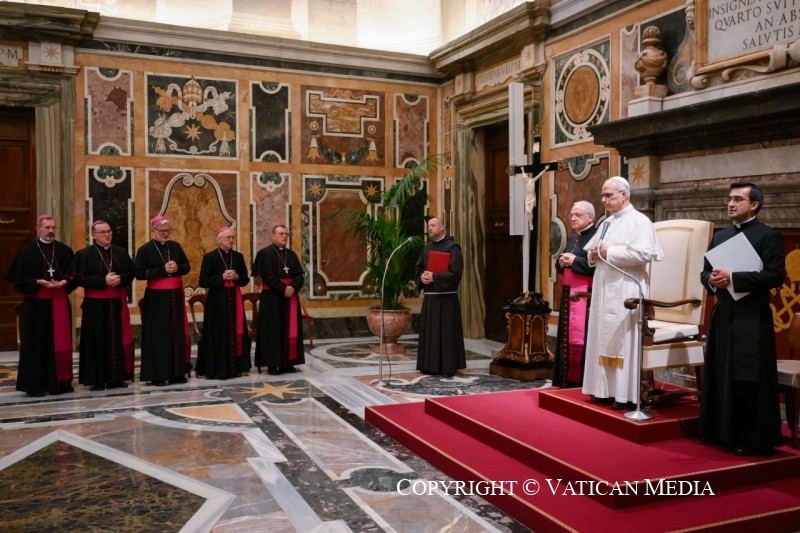 Сердечно приветствую всех вас, прибывших для совершения вашего юбилейного паломничества. Действительно, Святой год, который переживает Католическая Церковь, приглашает к паломничеству, потому что «отправление в путешествие традиционно ассоциируется с поиском смысла жизни» (Булла Spes non confundit, 5). В это время мы видим тысячи людей, идущих по улицам Вечного города, чтобы пройти через Святые врата, остановиться у могил Апостолов и Мучеников и наполнить свои сердца надеждой на многочисленных путях веры, которые пересекают Рим.